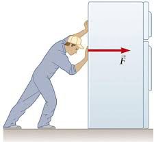 مطابق شکل، شخصی یک یخچال به جرم را بر روی سطحی افقی با نیروی هل میدهد و یخچال در آستانۀ حرکت قرار میگیرد.