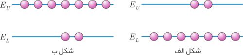 ت) کدامیک از شکلهای زیر، وارونی جمعیت در محیط لیزری را نشان میدهد؟ (0/25)