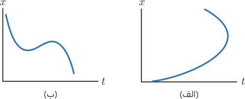 پ) با توجه به شکل زیر، نمودار (الف - ب) میتواند نشاندهندۀ نمودار مکان - زمان یک متحرک باشد.