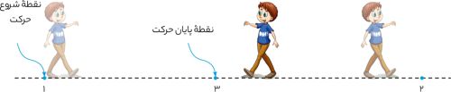 الف) مطابق شکل زیر، شخصی در راستای خط راست از مکان 1 به مکان 2 رفته و سپس در همان مسیر به مکان 3 برمیگردد. اندازۀ بردار جابهجایی (بیشتر از - کمتر از - برابر با) مسافت پیموده شده است.
