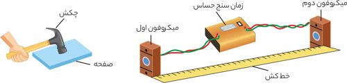 شکل زیر آزمایش سادۀ مربوط به اندازهگیری مشخصۀ امواج صوتی را نشان میدهد.