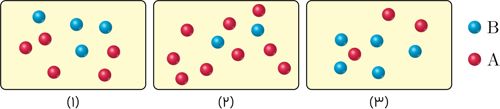 آ) اگر دما در شکل (1) باشد، کدام شکل (2) یا (3) تعادل را در دمای نشان میدهد؟ چرا؟