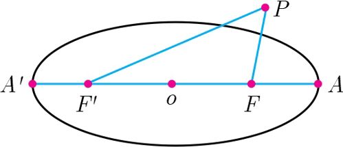 نقطه بیرون بیضی با قطر بزرگ و کانونهای و مفروض است.