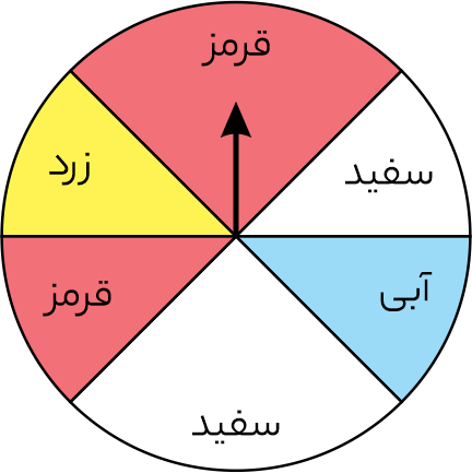 - اگر 300 بار عقربه را بچرخانیم انتظار داریم عقربه تقریباً چند بار روی رنگ قرمز قرار گیرد؟